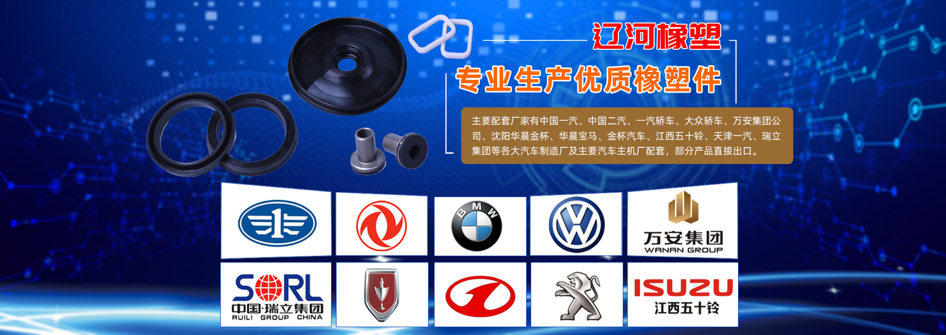 遼河集團(tuán)主要生產(chǎn)各類汽車三角窗密封條、O形圈、油封、皮膜、皮碗、減震系列等各類橡塑密封件和汽車用橡膠制品,公司銷售網(wǎng)點(diǎn)遍布全國各地,目前已經(jīng)為全國各大汽車制造廠及主要汽車主機(jī)廠配套各種橡膠制品。